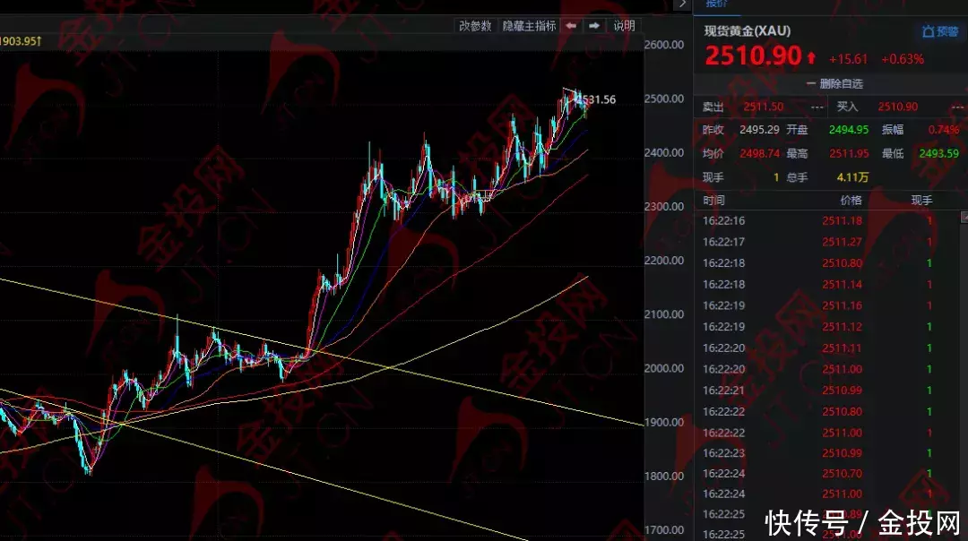 隔夜,现货黄金波及两周低点后又反弹,日内最高波及2499.99好意思元,最低波及2471.89好意思元,最终收于2495.29好意思元。本日欧市盘中,黄金大涨逾20好意思元,当今在2515好意思元隔邻徜徉。