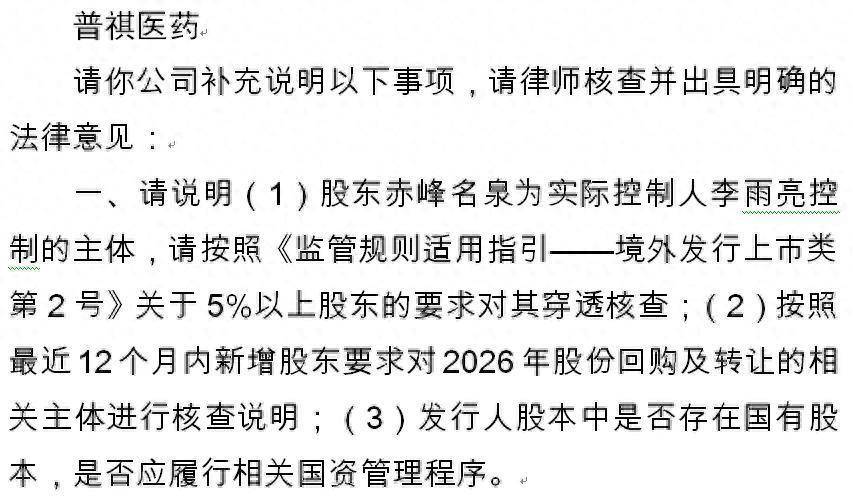 来源:证监会文献在激动结构方面,证监会条款普祺医药讲明激动赤峰名泉为践诺限度东说念主李雨亮限度的主体,需按照《监管王法适用指点——境外刊行上市类第2号》对于5%以上激动的条款对其穿透核查;同期条款按照最近12个月内新增激动条款对2026年股份回购及转让的相关主体进行核查讲明,并核实刊行东说念主股本中是否存在国有股本及是否应实施相关国资处分法子。